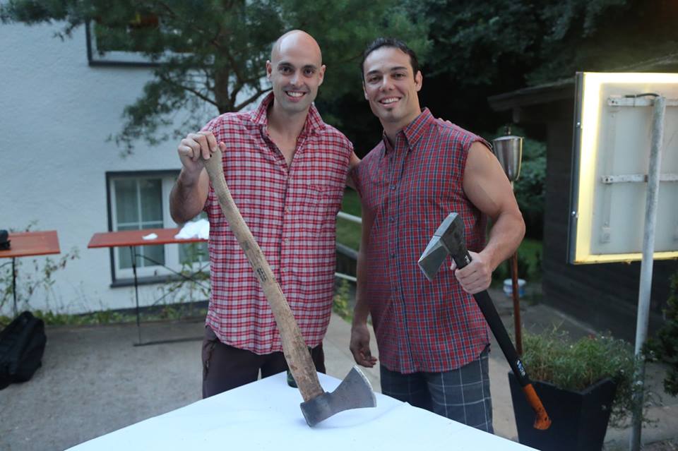 Ezra and I ended up winning but were subsequently challenged to a beer-drinking relay. Chugging beer was never a strength of mine and the Germans beat us handily.