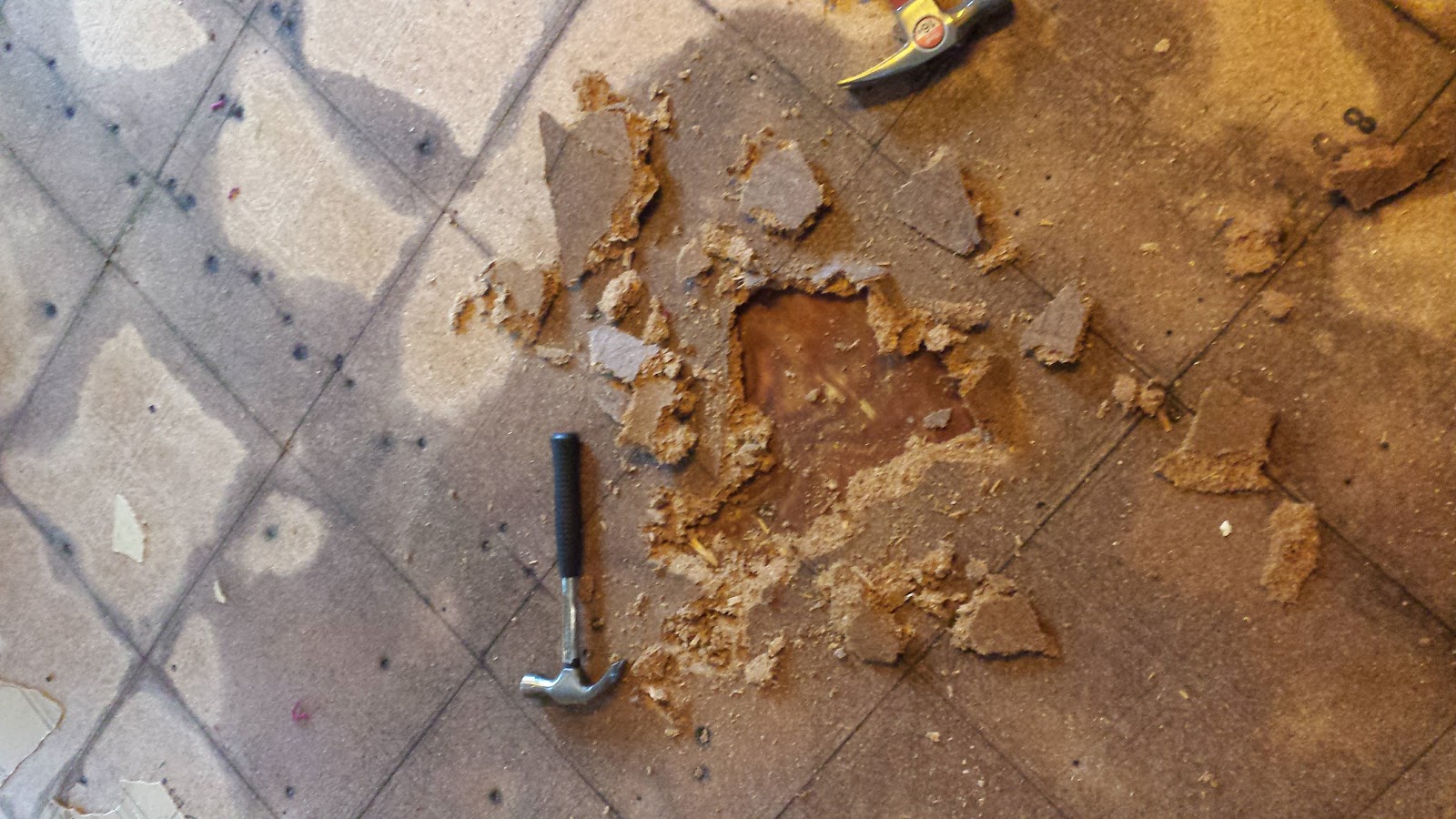 At this point I feel like I’m in some sort of twisted comedy. After several days of removing floors, all I can do is laugh…and say “fuck it.” I’m not removing any more floors.