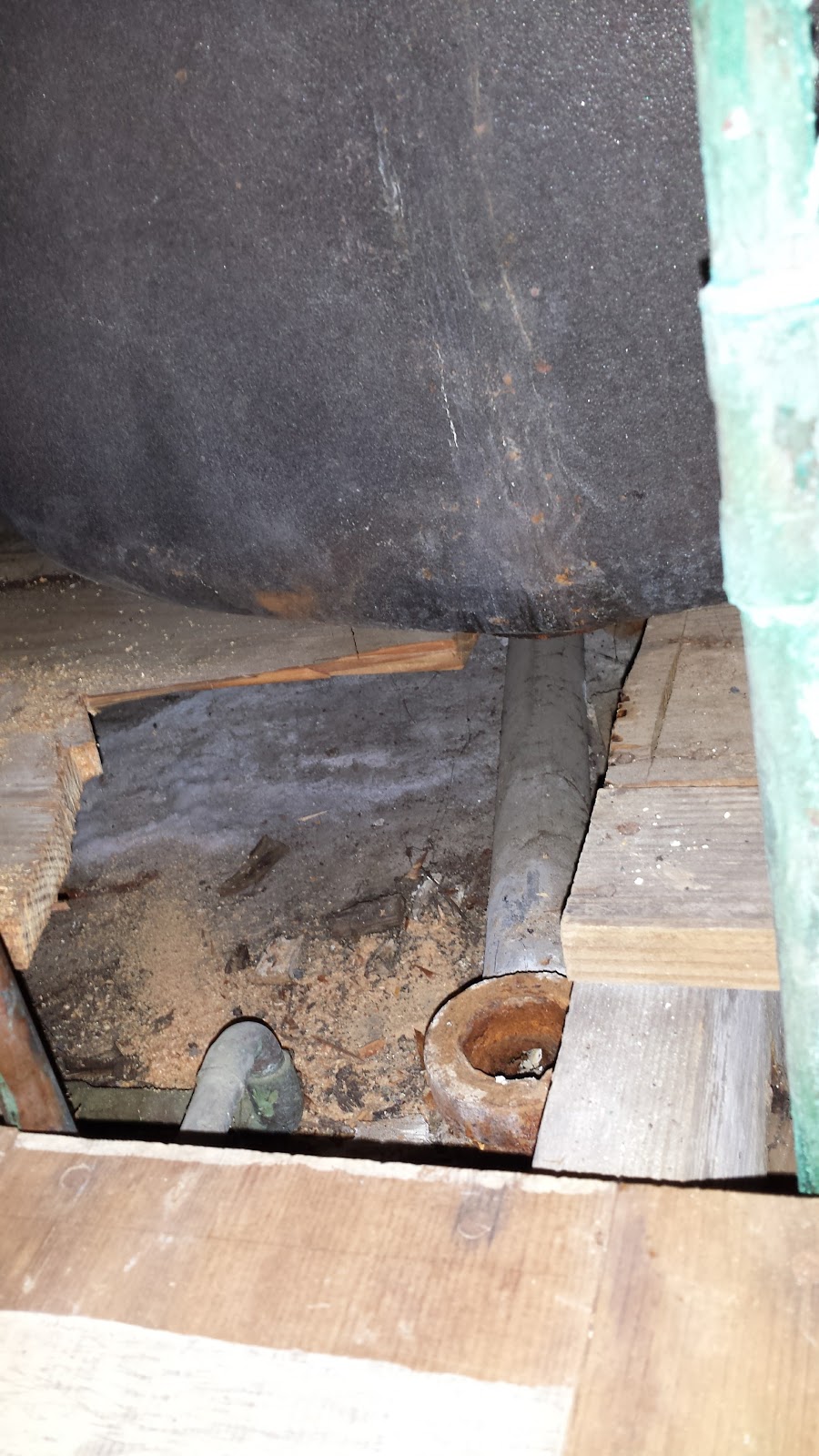 The (correction: “A”) problem was that the tub drain assembly had completely rusted out where it attaches to the main drain