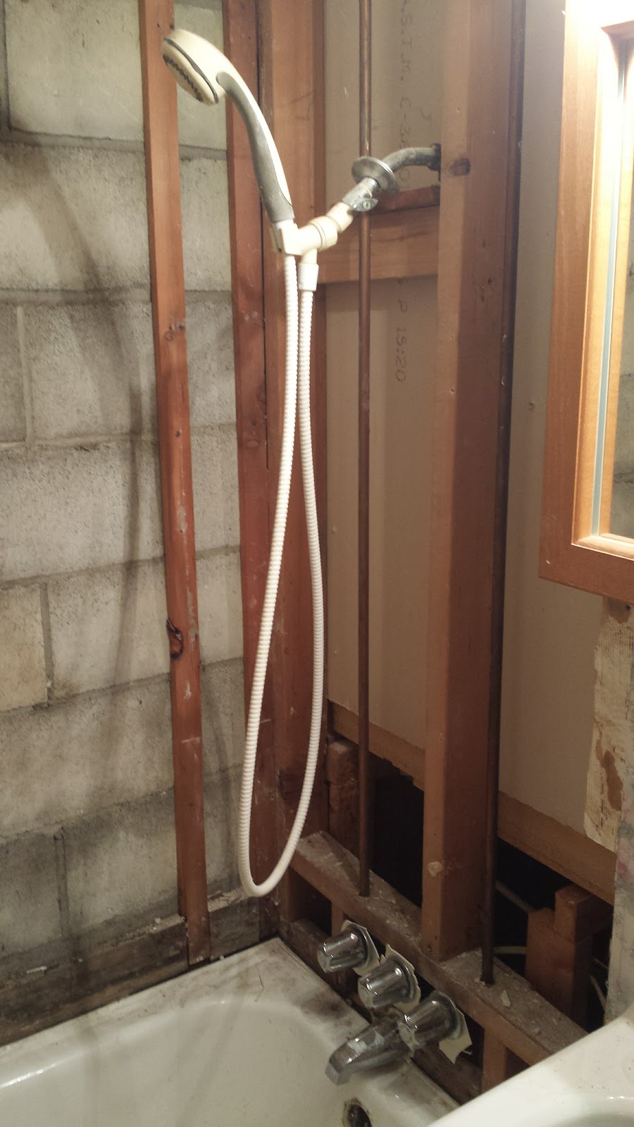 The problem now is that no modern tubs fit in the space. It’s too small. I’m going to have to build a custom shower…
