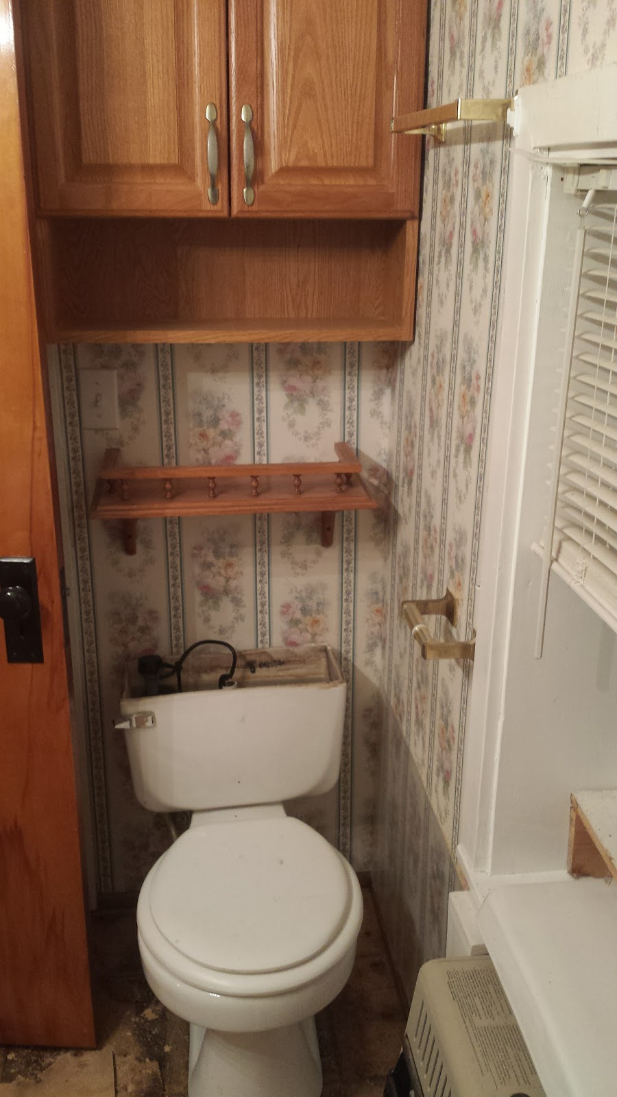 I needed a break from dealing with the floors if I wanted to preserve my sanity. I figured I’d move to the bathroom. I can’t remember why, but for some reason I dumped a bucket of water into the tub. I then noticed that 30 seconds later the adjacent closet floor was covered in water.
